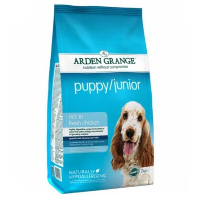 Arden Grange Puppy/Junior rich in fresh chicken is a complete, super premium pet food for small and medium breed puppies and adolescent dogs. This diet provides the optimal balance of protein, fat, fibre, calcium and phosphorus for puppies.