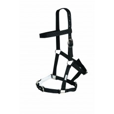 Manufactured in 1'' wide polypropylene web with strong metal nose fittings and padded base. 3 buckle, fully adjustable on head, nose and throat. Featuring a brow band attachment.