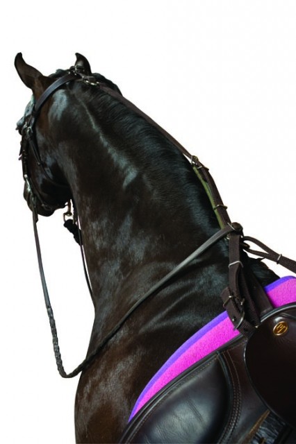 ? Adjustable straps run from saddle D-rings to bridle crown preventing the horse from stretching head down past a certain point