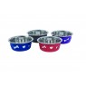 Stainless Steel bowl with a removable silicone outer. The bone pattern silicone outer can be removed for cleaning and helps to reduce noise and skidding.